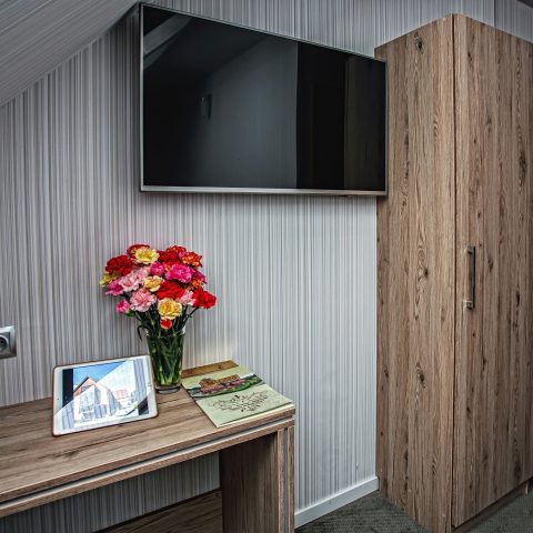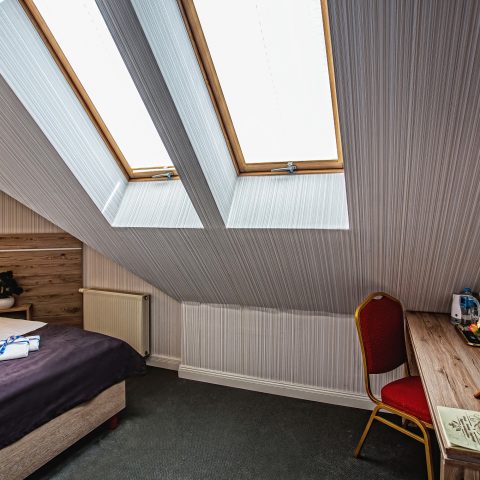 Pokój ekonomiczny jednoosobowy to gustownie urządzony pokój w stonowanej kolorystyce. Na gości czeka duże łoże typu Queen. Pokój wyposażony jest we wszystkie udogodnienia niezbędne podczas pobytu.
