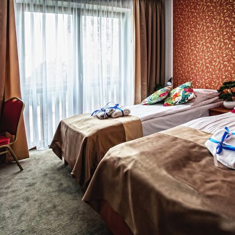 Pokój standard dwuosobowy to gustownie urządzony pokój w stonowanej kolorystyce. Na gości czeka duże łoże małżeńskie typu Queen lub dwa oddzielne łóżkatypu Twin. Pokój wyposażony jest we wszystkie udogodnienia niezbędne podczas pobytu